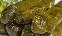 Σε ένα μπολ αναμειγνύουμε όλα τα υλικά μαζί. Τοποθετούμε λίγο από το μείγμα σε κάθε αμπελόφυλλο και τυλίγουμε σε ντολμαδάκια. Τα τοποθετούμε σε μικρή κατσαρόλα βάζοντας επάνω ένα μικρό πιατάκι, για να μην ανοίξουν. Προσθέτουμε ένα φλιτζάνι βραστό νερό και αφήνουμε να σιγοβράσουν επί 20 λεπτά. Αν χρειασθεί λιγάκι νερό ακόμη, συμπληρώνουμε με μερικές κουταλιές της σούπας, πάντοτε βραστό.